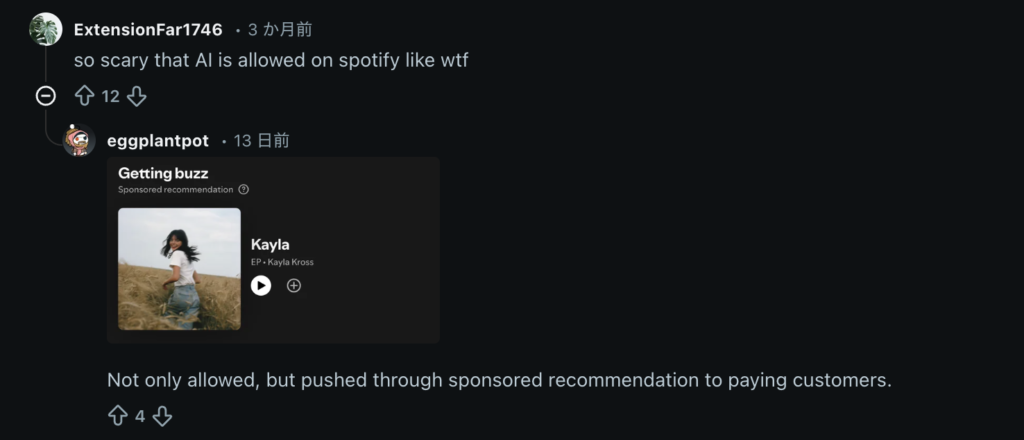 「SpotifyでAIが許されてることが怖すぎ」